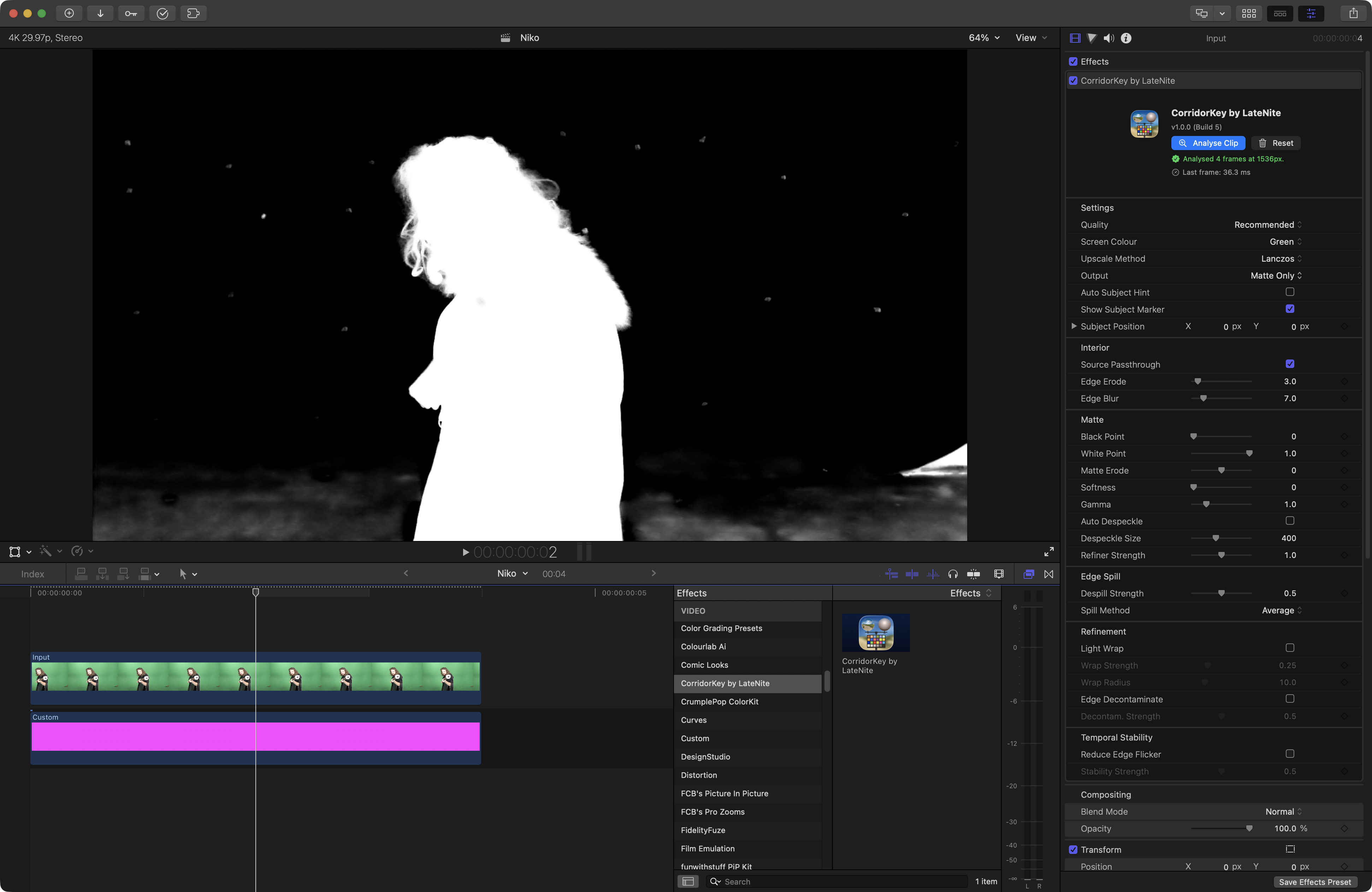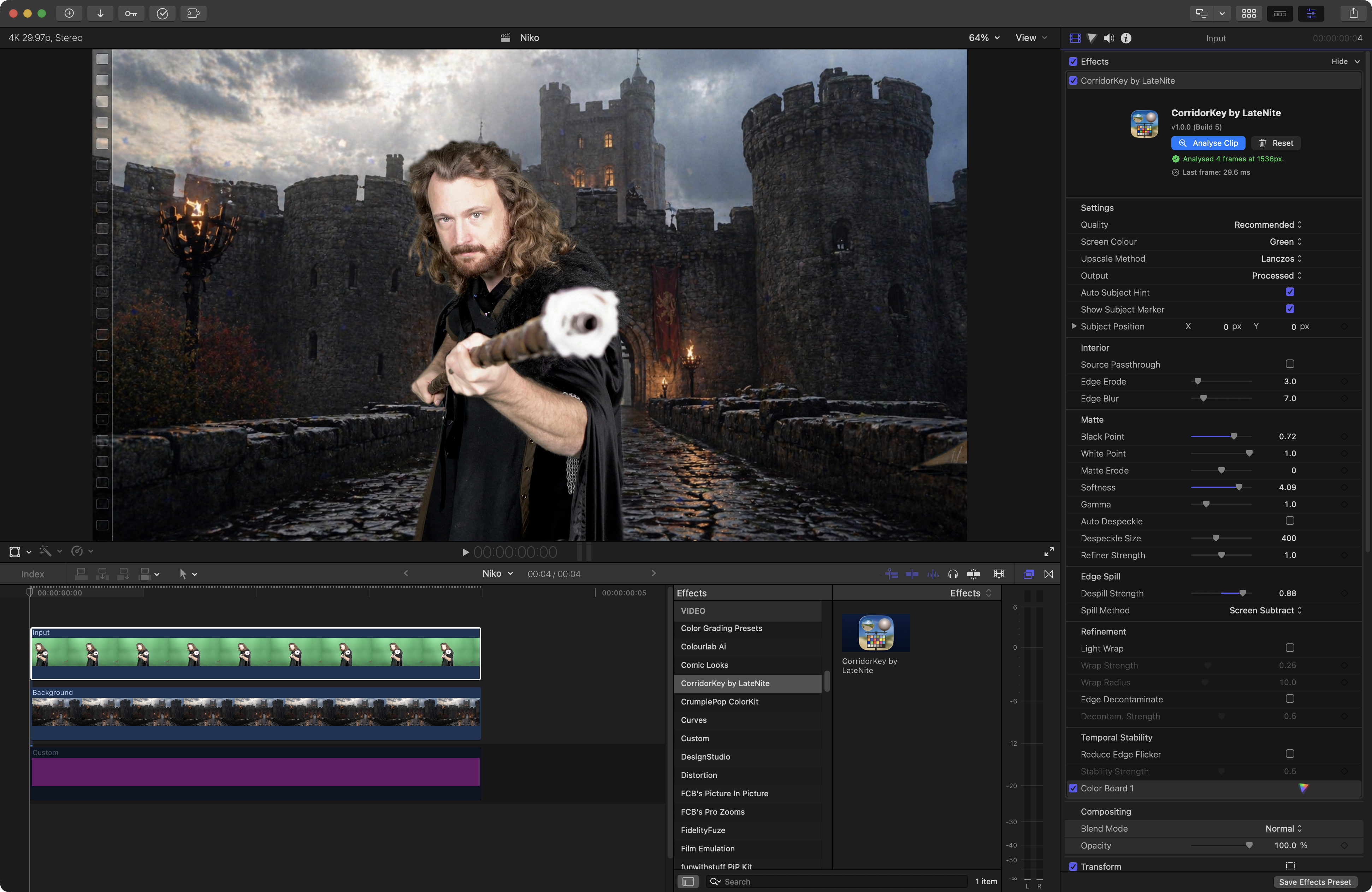 You can then apply the CorridorKey by LateNite effect to your clips from the Effects Browser: