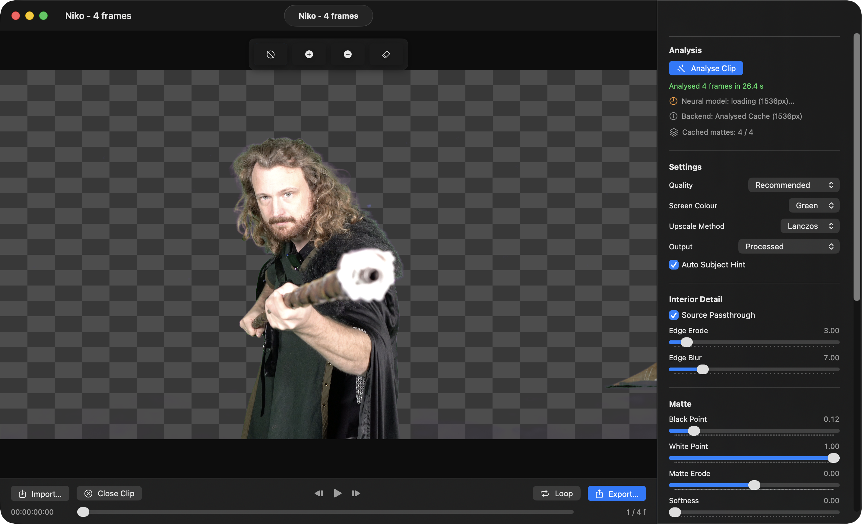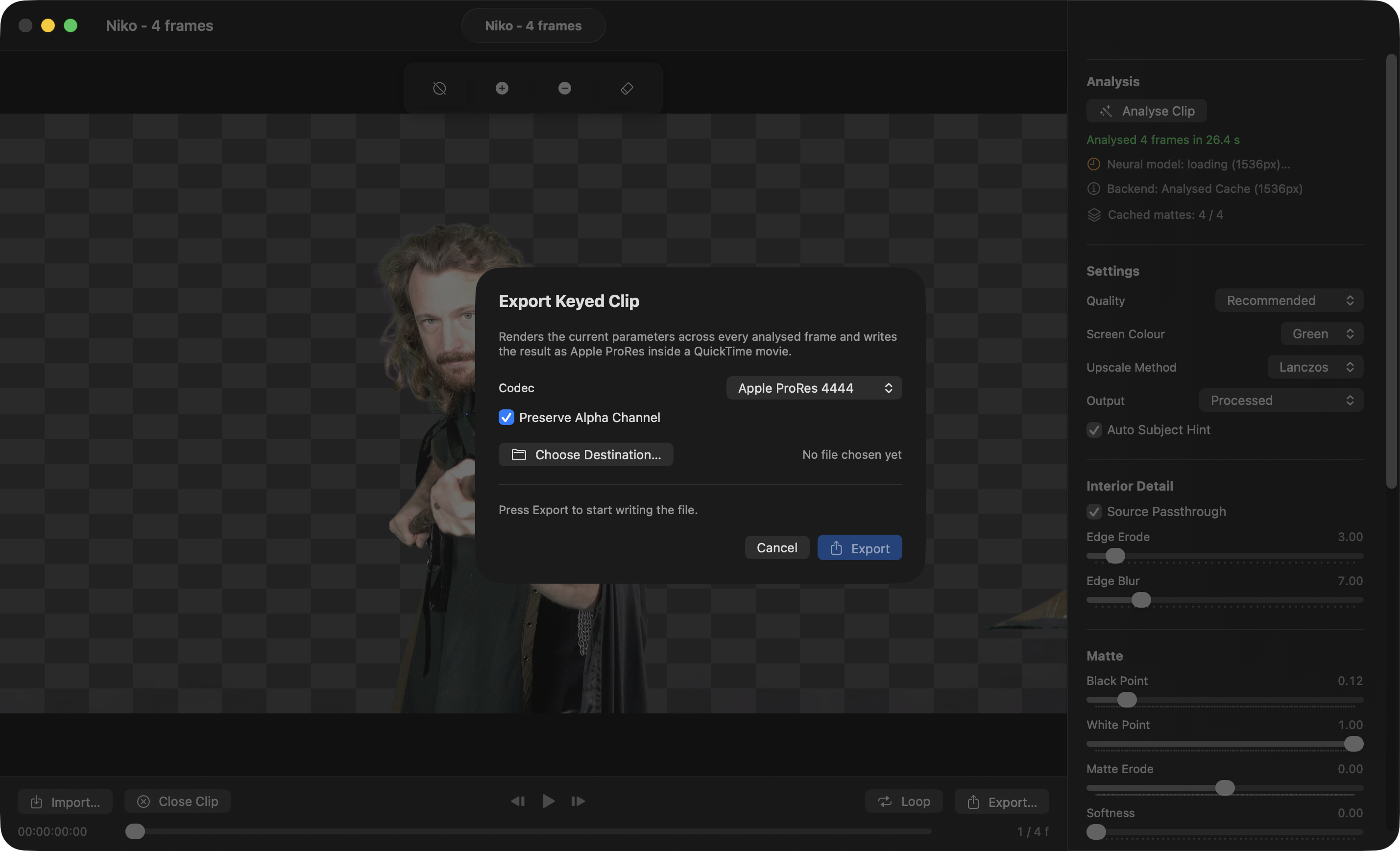 Once you're happy to you can export your result as ProRes 4444 (with alpha).